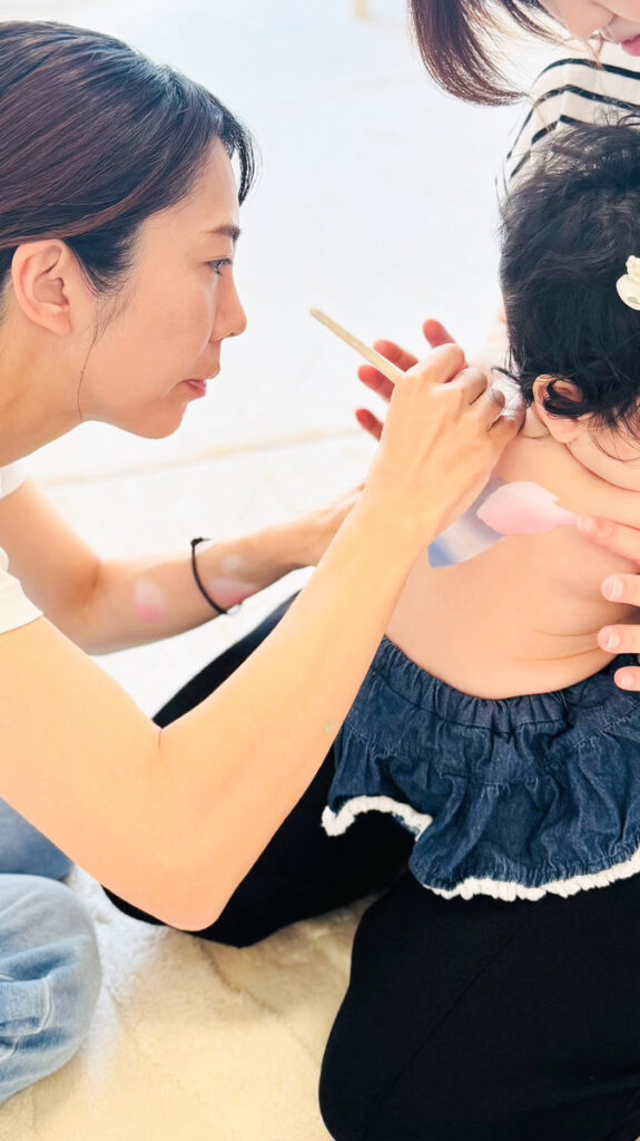 時にはベビーペイントアーティストやセラピストとして、時には認定こども園を経営する社会福祉法人 福禄会の評議員として保育施設との繋がりも大切にしています。いろんな肩書を持っていますが、お店では「頼れるママ友のような存在」でいたいなと思っています。